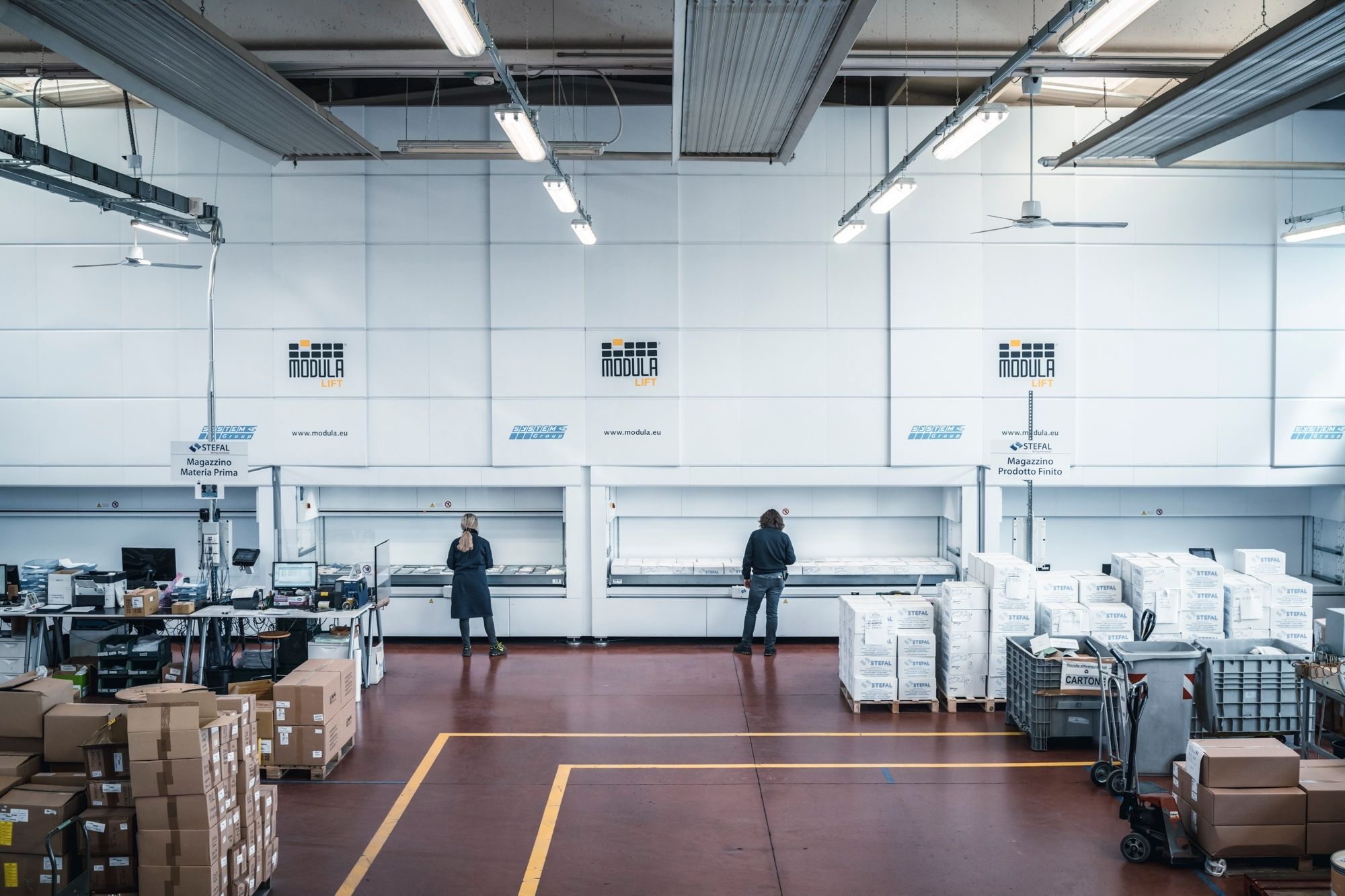 To ensure greater safety at work, coupled with maintaining a smooth product tracking flow, we have partnered with Modula to take advantage of on-site vertical warehouses. These allow us to dispense with racking, ladders and forklifts, limiting possible accidents at work as well as auditing errors in the production management system. In fact, the type of storage organisation in question facilitates warehouse operations by helping to save space, speeding up the retrieval of materials, eliminating picking errors, and ensuring protection of our operators at work.